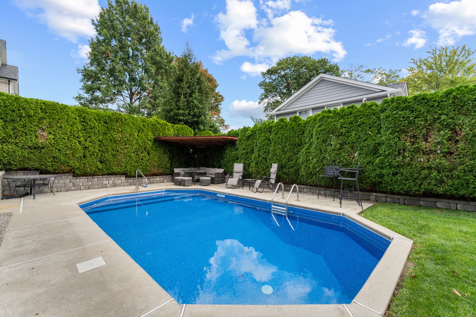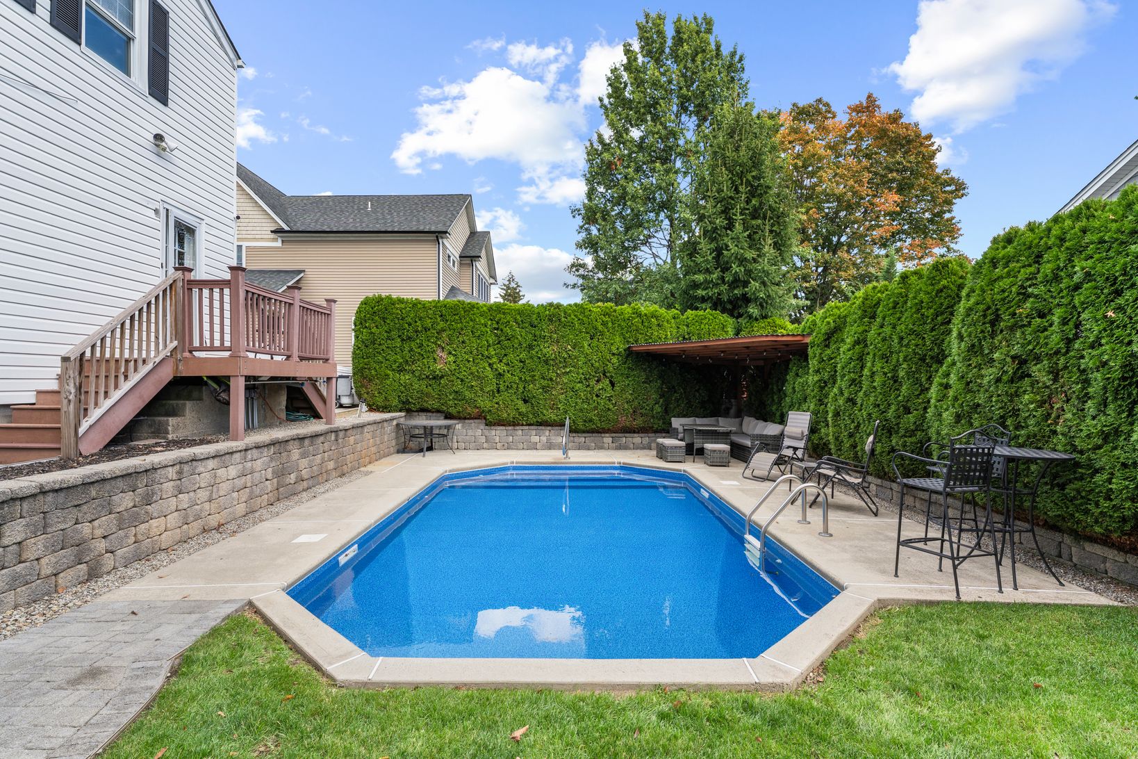 Resort Style Backyard: A rare in ground pool in River Edge turns summer into a staycation. There is plenty of patio space for lounge chairs and outdoor dining, with room to host pool parties or enjoy a quiet evening swim.